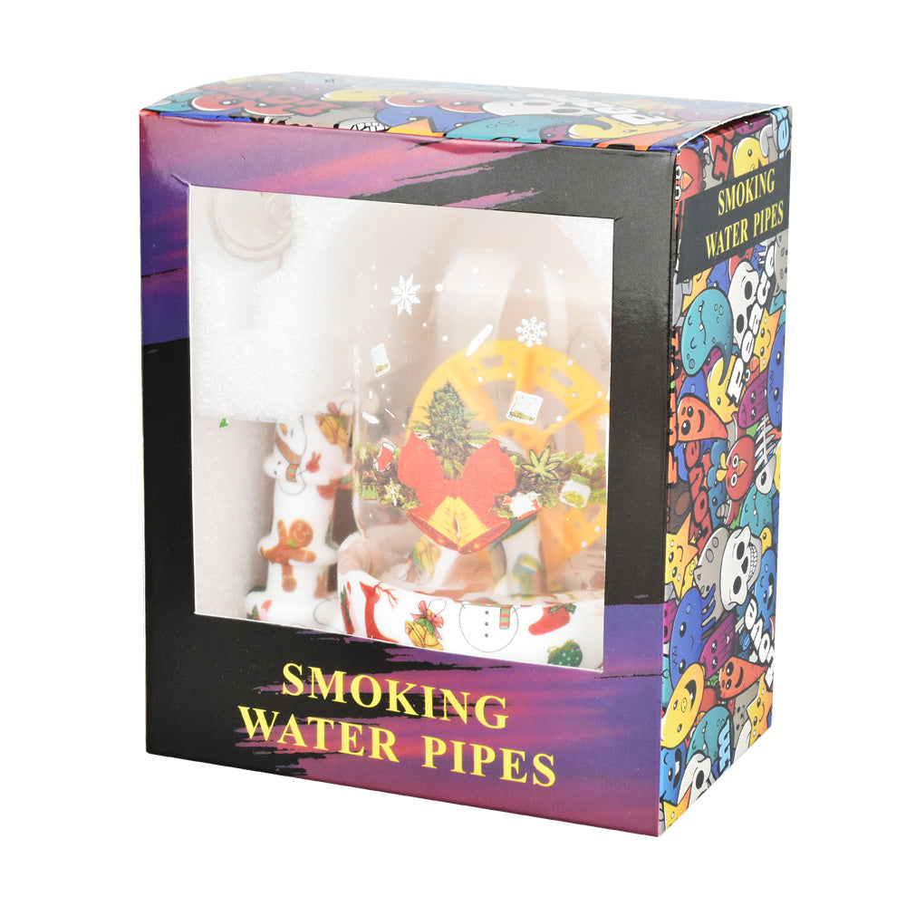 A one-of-a-kind way to make a splash this season – with a fun-filled, functional accessory sure to bring some Christmas cheer! This unique water pipe features a silicone pipe exterior with a glass dome containing an interior waterwheel, all adorned with festive Christmas patterns. The pipe also includes a 14mm male herb slide with a handle and stands at a compact 4.5 inches tall. Each piece boasts its own distinct design, adding to the charm of this holiday-themed accessory.
