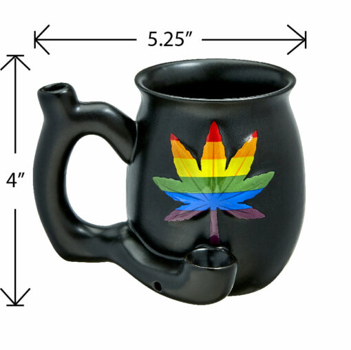 - The mug features a matt black color with a raised LGBTQ style leaf decoration, adding a stylish touch.