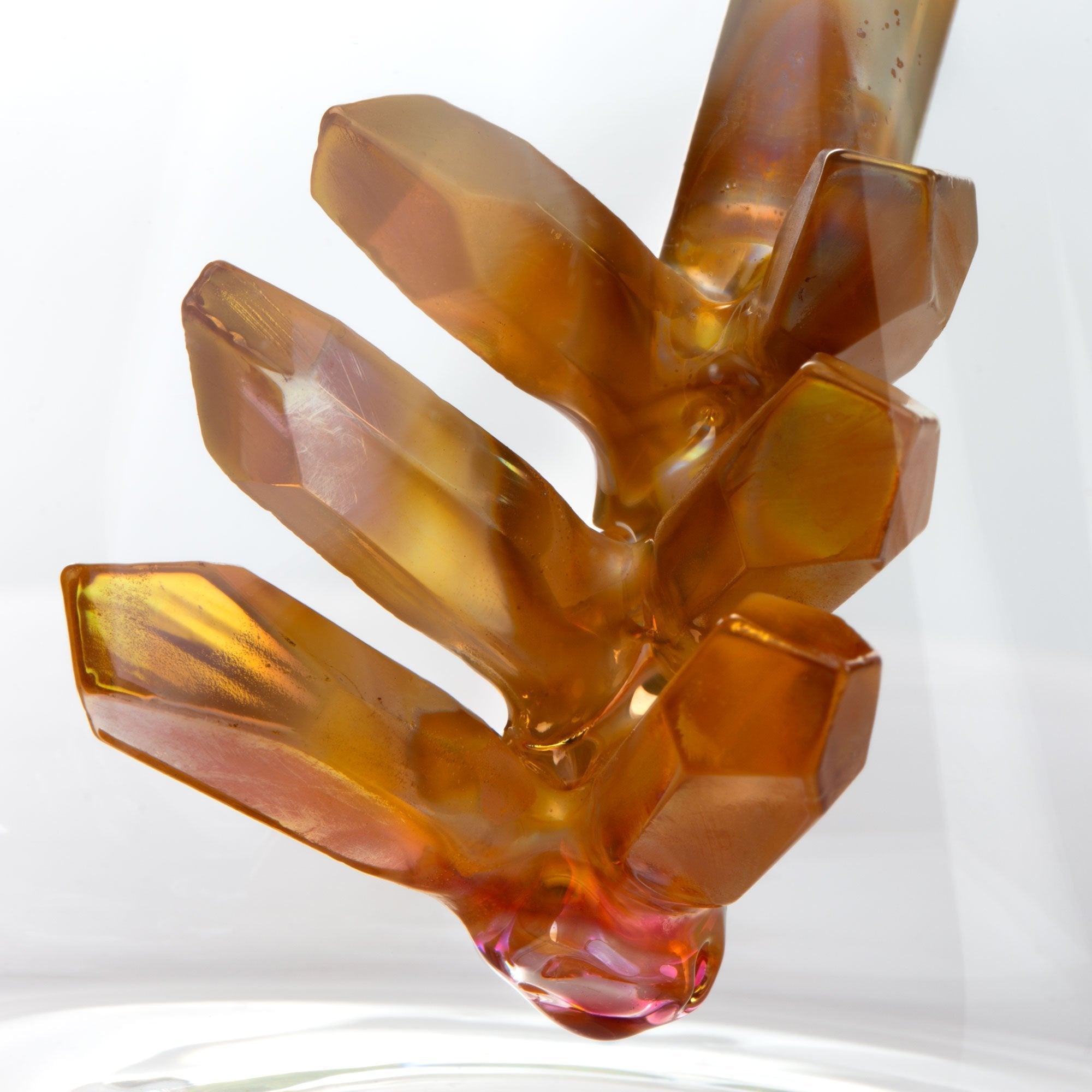 Envy produces scientific water pipes that have heady features. They are experts at blending these two typically opposing aesthetics together successfully into one clean and gorgeous look. The Crystal Stego Beaker is a towering example of tight welds, heavy walls, and intricate detailing. The molded crystals shine in gold fumed red tones and are a striking addition to the fixed downstem. The triple pinch ice-catch keeps your hits chilled and is a welcome addition to this glass bong.