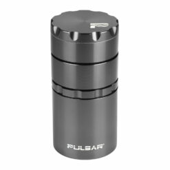 This Pulsar Metal Storage Grinder has a magnetic top, diamond shaped teeth, sifting screen, and pollen chamber. The pocketable grinder also features a storage compartment in the base, separate from the grinding component. Raised grip edges make grinding and untwisting simple. Multiple color options available.
